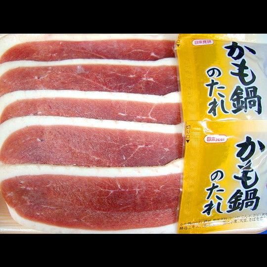 ハンガリー産の鴨ロース肉を鍋用にスライスしました。白葱、椎茸、しめじ、しらたき等の具材を入れてお召し上がり下さい。その他に「すき焼風」に味付して生卵に付けて召上るのもまた美味しいです。発送はスライスしてから冷凍便で発送します。