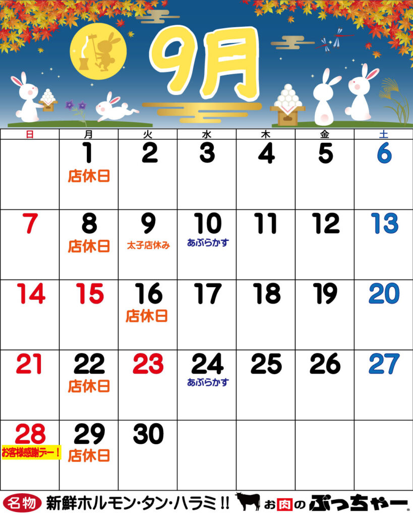 9月の予定です☆