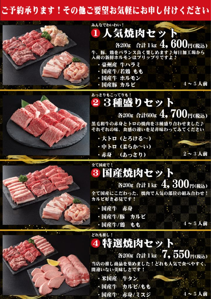 そんな貴方にもオススメなのがこの4種類の焼肉セットです(^^)/