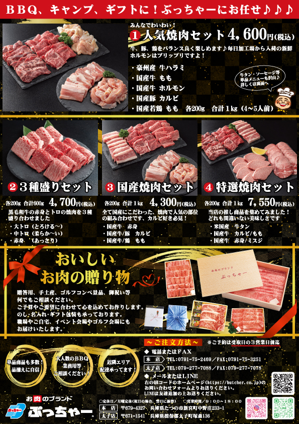 左上④特選焼肉【1kg】の金額は7,550円(表面と同額)です。